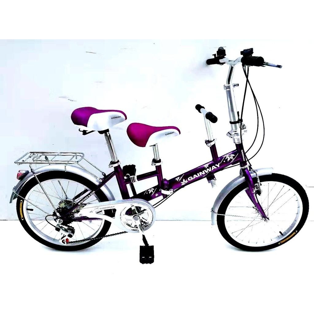 Kedai Basikal Losong New Arrival Folding Bike Mother And Son Sesuai Untuk Berkayuh Bersama Anak Kecik 3 Tempat Duduk Saiz 20 Inci 4 Speed Body
